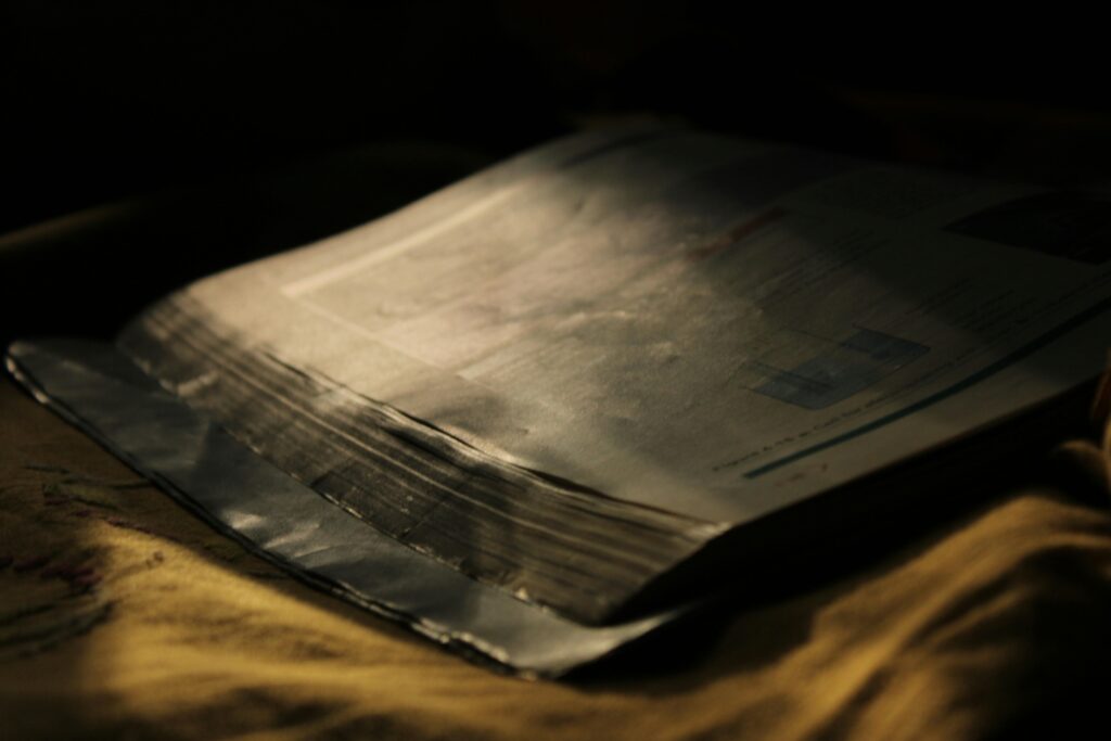 “Exploring the Depths of Inner Introspection: Ethereal Shadows and Silken Ties in a Mystical Setting”